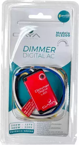 O Dimmer Digital AC Bivolt 200W, da marca Gaya, é a escolha ideal para quem precisa de um controle preciso de intensidade de luz em sistemas de corrente alternada. Compatível com voltagem bivolt, este dimmer oferece potência máxima de até 200W, permitindo ajustar a luminosidade conforme as necessidades do ambiente.